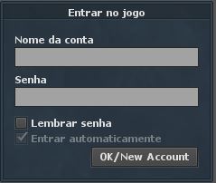 Após baixar e instalar seu cliente, abra-o. Ao se deparar com a tela Inicial, no menu 'Entrar no Jogo', não faça nada, deixe os campos vazios e aperte em Ok/New Account.