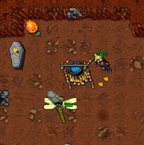 Assim que descer o buraco você encontrará Shino fazendo suas experiências, fale com ele "hi", "yes", "yens", "potion", "rose". Neste momento ele lhe cobrará 10k.